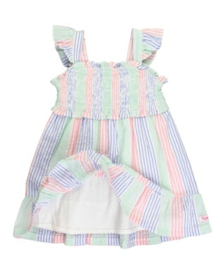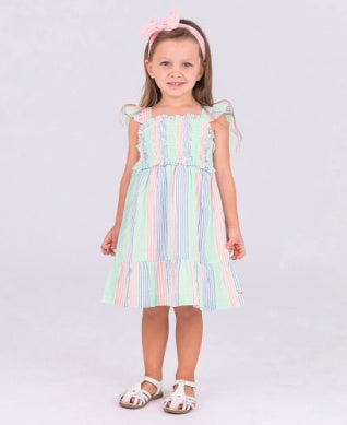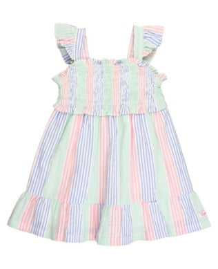 Multi-color Seersucker Smocked Flutter Strap Dress